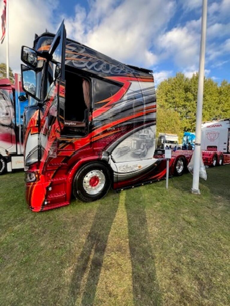 Im September war dann mein Geburtstag und es gab einen Kuchen an einem verregneten Tag unterm Carport. Auf der Arbeit hieß es Hecke, Hecke, Hecke und das mit halbem Personal, denn die Sommeraushilfen mussten wieder zur Schule. Mitte September ist dann für Ramsele und Umgebung das Highlight des Jahres mit dem Ramsele Lastbilträffen erreicht. Ein LKW-Treffen mit über 300 LKWs und verschiedenen Ausstellern und großem Musikprogramm. Aus fast ganz Schweden und auch Norwegen und Finnland kommen die LKWs, teils sogar aus der Schweiz und den Niederlanden. Tage vorher kann man die tollen LKWs auf den Straßen anreisen sehen und hören. Ein absolutes Muss, sich das mal anzusehen. Ende September gab es dann endlich die ersten Hefeklöße und selbstgemachte Blaubeersoße, ein Traum. Die Temperaturen gingen dann schon nachts gegen null und dunkel ist es dann auch schon. Von Mitte Mai bis Anfang September braucht man abends keine Taschenlampe, das ist schon was Schönes.